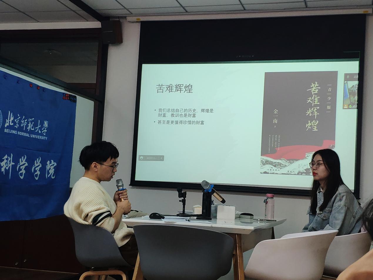 随后进行了“喜迎二十大,永远跟党走”系列读书会。刘壹果推荐了《苦难辉煌》一书。本书对20世纪二三十年代的中国的历史进程进行了剖析,展现了中国共产党领导人民进行革命战争的正义、艰辛和伟大。王浩源推荐了《党员、党权与党争》。本书借古观今,考证翔实,图表丰富。兰松推荐了林毅夫的《解读中国经济》和视频《中国经济专题》。