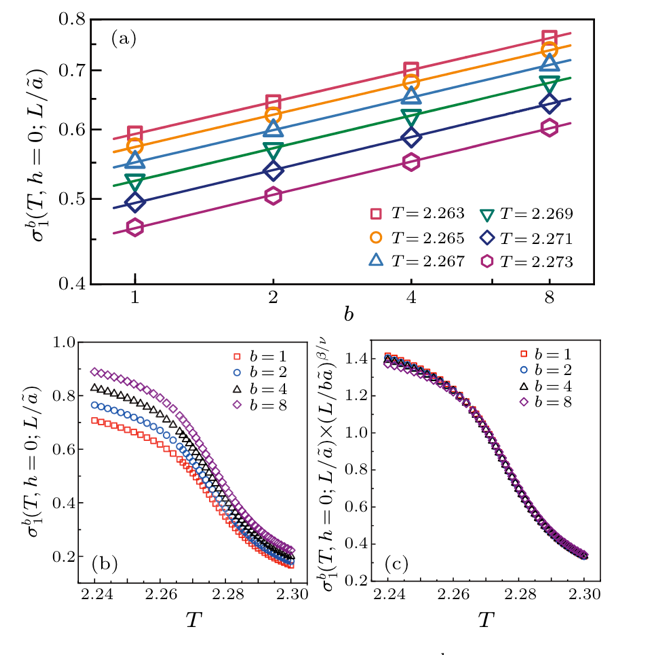 )体现出的低温不动点(a)和高温不动点(b,c),以及其满足的标度形式