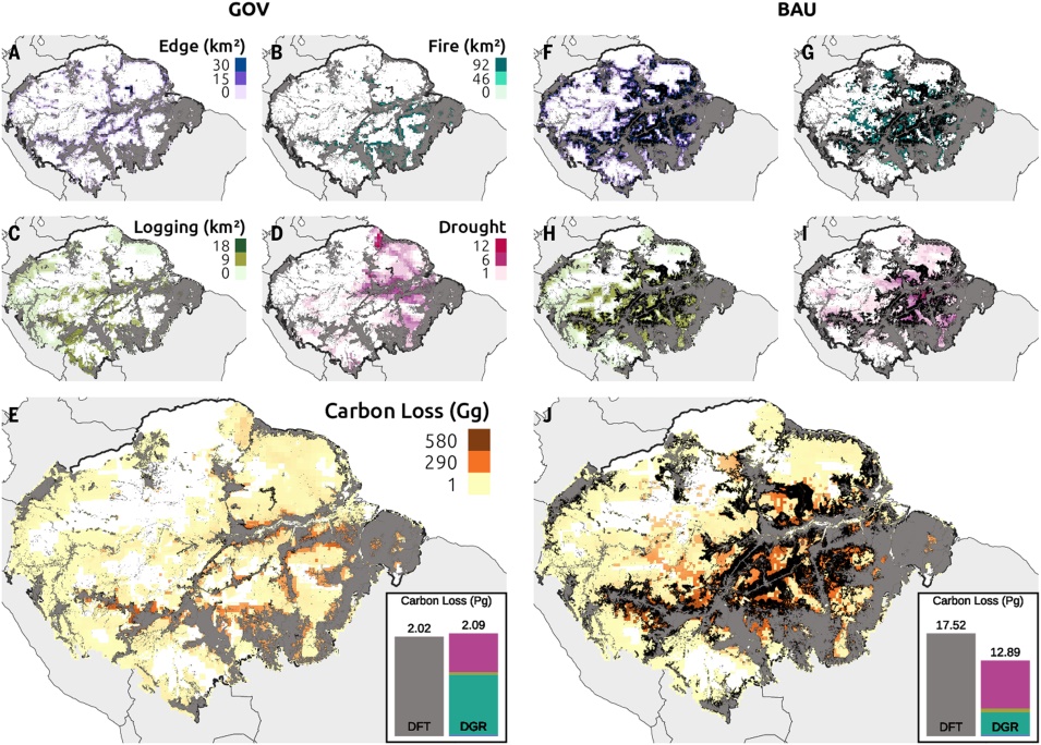 图3通过其主要驱动因素,亚马逊雨林退化的2050年一阶预测