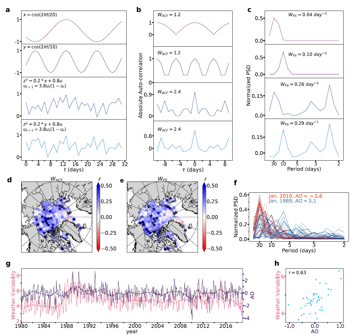 有了这两种工具,我们现在能够精确地描述并量化各种时间序列的稳定性和随机性,特别是北极涛动对天气的影响,如图2所示。