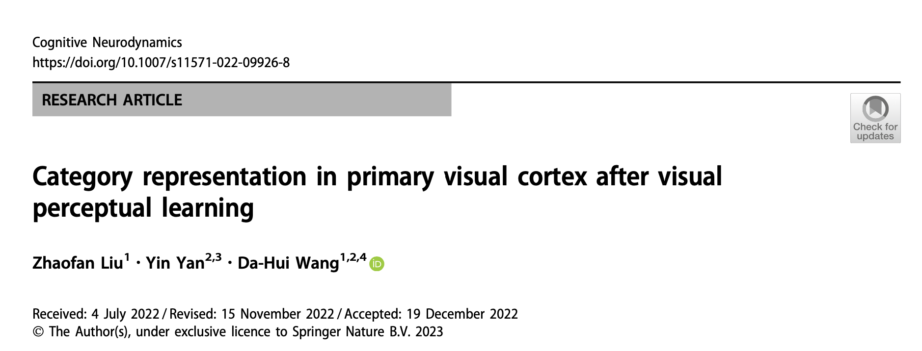 该工作由色情直播app 博士生刘赵凡在认知神经科学与学习国家重点实验室阎崟副教授和色情直播app 王大辉教授共同指导下完成。近期发表在CognitiveNeurodynamics,论文参见:Liu, Z., Yan, Y. & Wang, DH. Category representation in primary visualcortex after visual perceptual learning. CognNeurodyn (2023). //doi.org/10.1007/s11571-022-09926-8