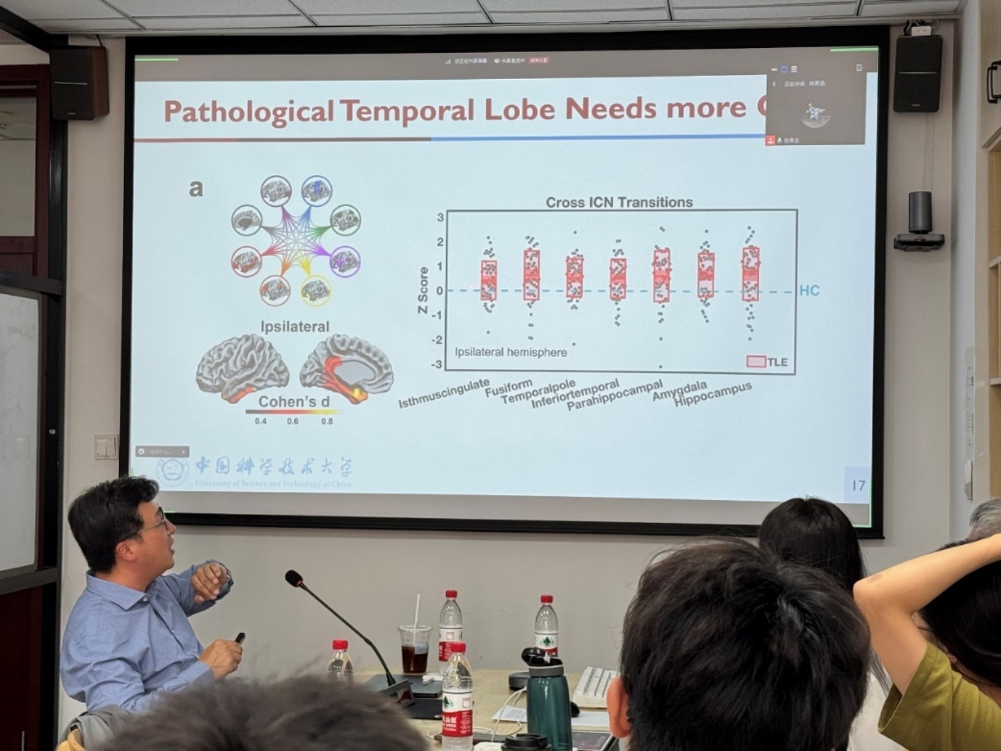 2024年9月25日,我院脑与认知方向首次师生研讨会顺利开展。本次活动有幸邀请到来自中国科学技术大学生物物理学博士、心理学系特任研究员、博士生导师何晓松研究员来为学院从事脑与认知方向研究的老师和同学们进行了题为《网络神经科学在癫痫手术中的应用:从功能磁共振视角得到的启示》的交流报告。何晓松研究员主要从事运用多模态脑成像和网络神经科学方法分析癫痫发病机制和预后方面的研究,其以第一作者的身份在Science Advances,Brain,Neurology等期刊发表论文40余篇。何晓松研究员基于功能磁共振数据、结合网络科学的方法,在分析难治性颞叶癫痫的治疗方案、临床风险、手术预后等方面积累了丰富的研究经验。学院脑与认知方向的王大辉老师、陈育涵老师、廖旭红老师、邵宇秀老师,以及相关方向的多位博士、研究生同学,一同参加了此次活动。