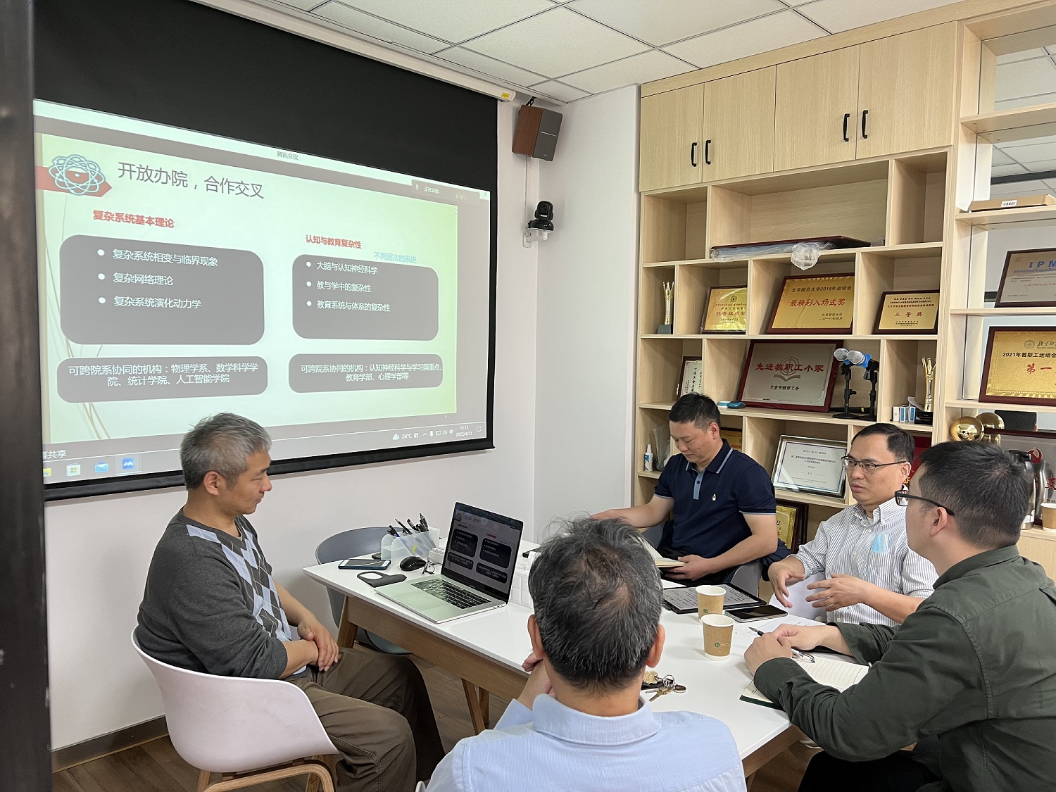 王大辉副院长代表学院介绍了我院科研整体发展情况以及未来发展规划。他详细汇报了北师大系统科学发展历程、学科发展需求、学院科研现状、“双一流”学科建设以及“十四五”规划等情况。最后还介绍了学院开展学科交叉合作、创新团队建设以及学科建设的工作思路。